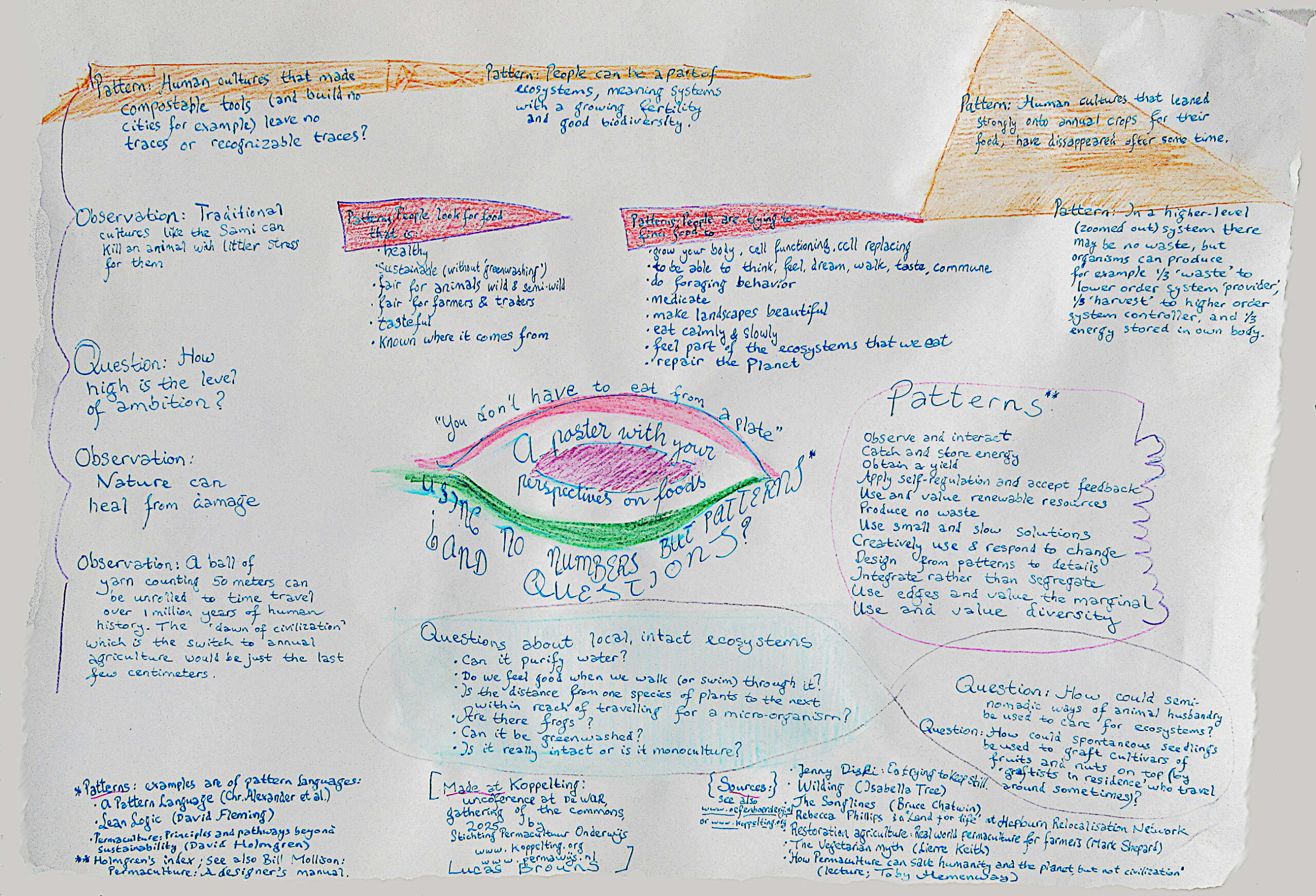 Let’s draw a poster about getting our food in ecologically sound ways, a poster consisting of patterns and questions.